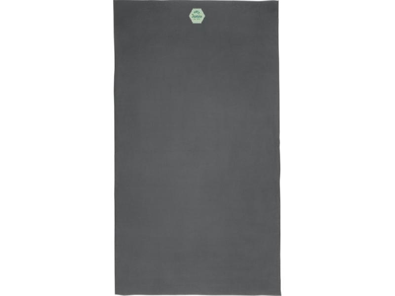 Спортивное полотенце Pieter очень хорошо впитывает влагу, легкое, быстро сохнет, а ткань прочная и очень мягкая. Когда полотенце сложено и закреплено резинкой, оно уменьшается до небольшого размера, поэтому его удобно брать с собой в тренажерный зал, бассейн, на пешую прогулку или в поход. Полотенце размером 180 х 100 см изготовлено из 90 % переработанного полиэстера GRS и 10 % нейлона. Его можно стирать в стиральной машине при температуре 40 °C. В комплект поставки входит мешок для хранения (25 x 8,5 см), изготовленный из переработанного ПЭТ-пластика, который обеспечивает большую площадь для печати логотипа. 90% Переработанный Полиэстер, 10% Нейлон, 200 g/m2.