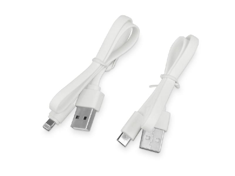 В комплекте к устройству идут два кабеля USB с разъемами micro-usb и lightning. Зарядное устройство упаковано в подарочную коробку. УФ-печать (УФ-печать белые изделия) на данный товар осуществляется бесплатно. Оплачивается только настройка оборудования в размере 2000 рублей на весь тираж.