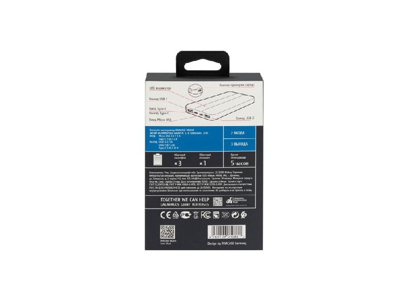 —RIVACASE VA2041 (10000 мАч) внешний аккумулятор, черный 12/48