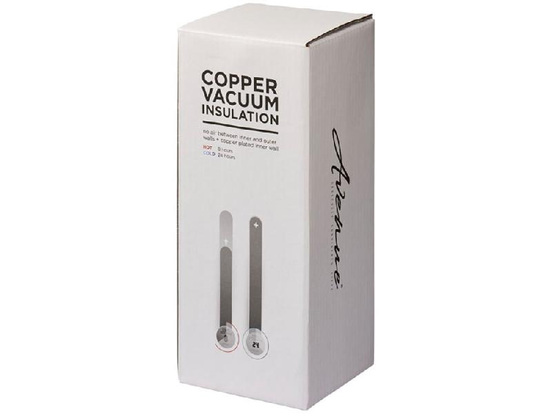 Вакуумный термос Peeta с медным покрытием. Прочный термос идеален для путешествий и поместится практически в каждый подстаканник. Выполнен из нержавеющей стали с двойными стенками и вакуумной, медной изоляцией, что позволит сохранять температуру холодных напитков до 24 часов, а горячих - до 8 часов. Конструкция также предотвращает образование конденсата снаружи. Объем 500 мл. Нержавеющая сталь. Гравировка (CO2 лазер) (Без чернения) на данный товар осуществляется бесплатно. Оплачивается только настройка оборудования в размере 1100 рублей на весь тираж.