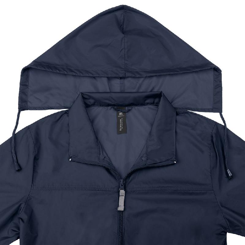 Ветровка приталенного кроя на молнии с капюшономБез подкладкиКапюшон убирается в воротникМанжеты на резинке, утягивающий шнур по низу, два кармана на молнииКуртку можно компактно сложить в один из карманов