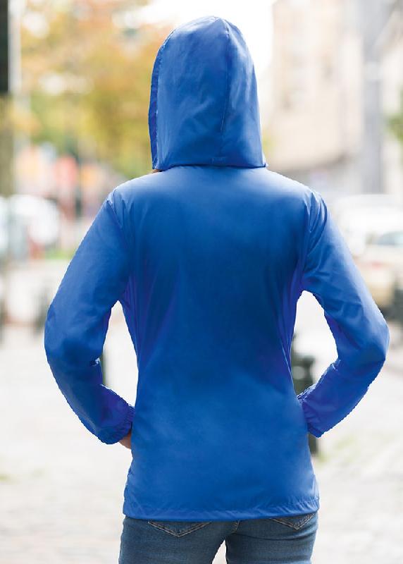 Ветровка приталенного кроя на молнии с капюшономБез подкладкиКапюшон убирается в воротникМанжеты на резинке, утягивающий шнур по низу, два кармана на молнииКуртку можно компактно сложить в один из карманов