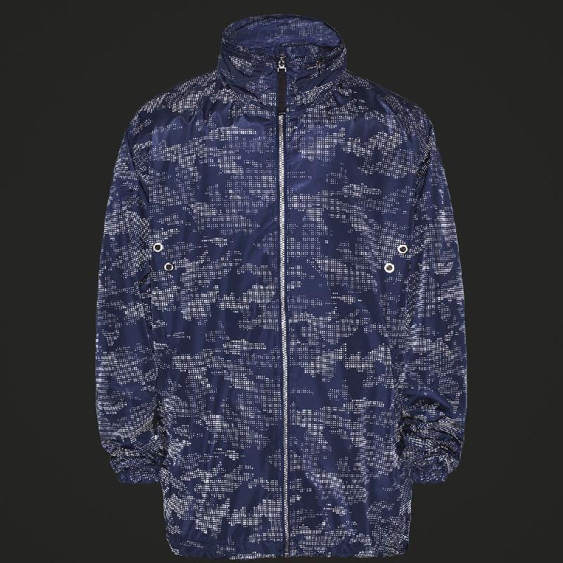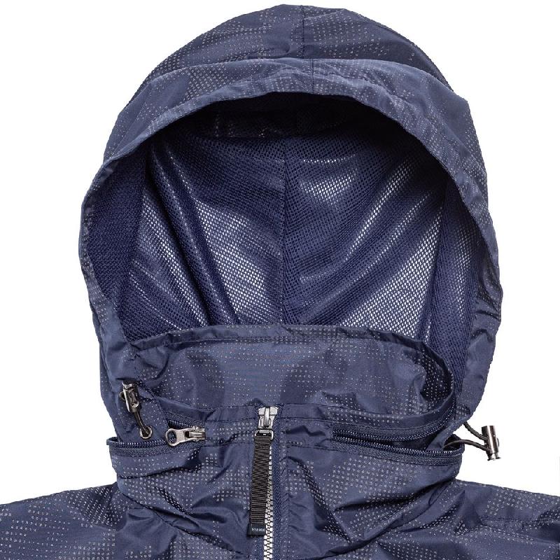 Ветровка с капюшоном из ткани с водоотталкивающей пропиткой и светоотражающим рисунком.Эргономичный капюшон убирается в воротник2 наружных кармана на молнииЭластичные манжетыУтягивающий шнур по низуОтделанные люверсами отверстия для вентиляцииПодкладка из сетки