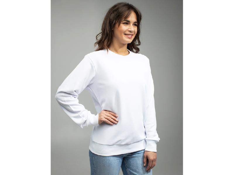 Свитшот прямого кроя с круглой горловиной и втачным рукавом. Особенности плетения полотна позволяют добиться эффекта 100% хлопка с внутренней стороны, обеспечивая гипоаллергенность и комфорт при носке, и 100% полиэстера с внешней стороны изделия, обеспечивая яркость красок нанесения и их износостойкость. Горловина, манжеты и низ зделия выполнены из полотна Кашкорсе (95% хлопок и 5% спандекс). Трафаретная печать (1 цвет (белые изделия)) на данный товар осуществляется бесплатно. Оплачивается только настройка оборудования в размере 8200 рублей на весь тираж.